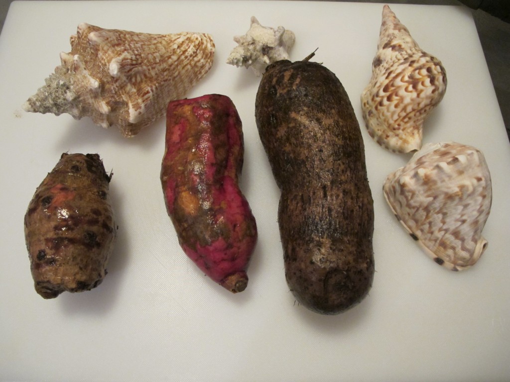 Buying groceries at the local supermarket named Starfish, I was also perusing the aisles for local fare. The only thing I came up with were basketfuls of tubers; tania, local sweet potatoes and yams. They were positioned in baskets next to several varieties of potatoes. I asked the women behind the deli counter how to prepare them. As I held each item up, the answer was the same. Peel them and boil them. At first, I laughed inside, but if someone asked me how to prepare potatoes I would answer the same. Maybe I would add frying and mashing to the mix. And why do we need all those varieties of potatoes? The flavor differences are subtle but the qualities of the starches are not.