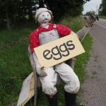 On the road to Crowe’s Landing ,Stoney Lake ,there is a farm wth an arresting sign: a life size soft sculpture of an old man holding a board that reads,”EGGS”. If you are lucky he isn’t holding the sign that says ‘Eggs sold out”.