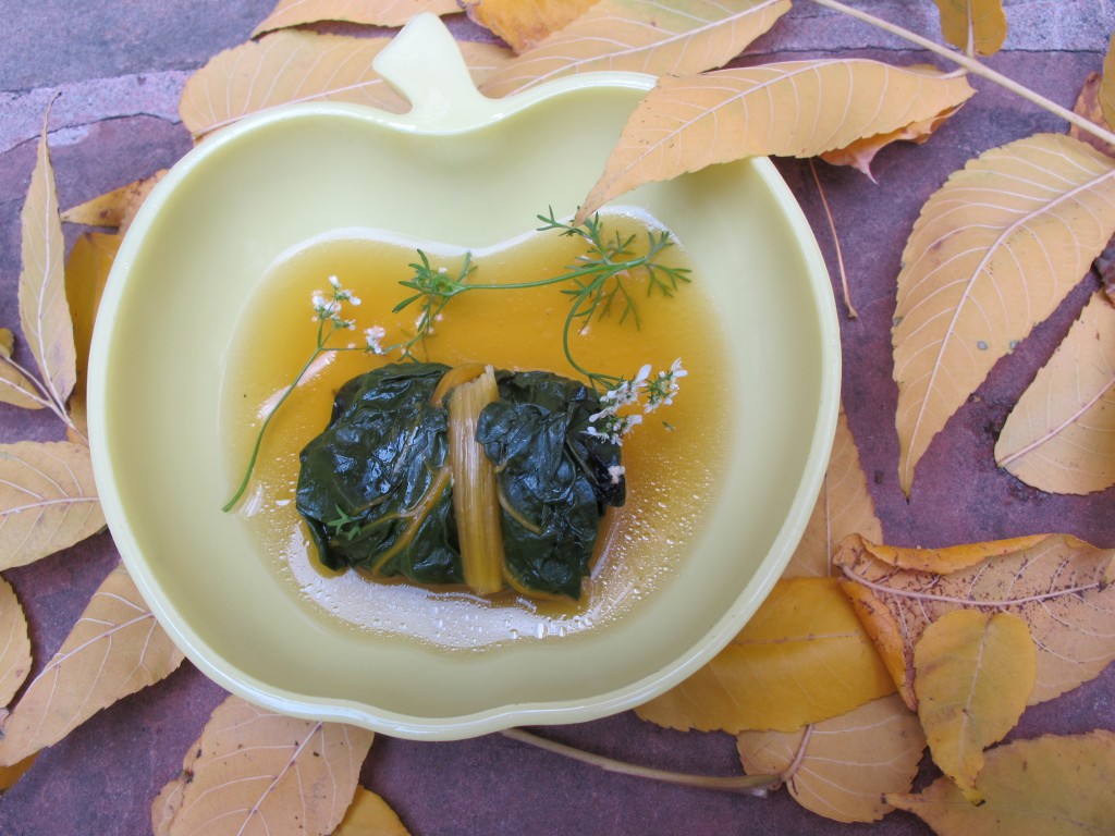 As the weather cools, here is a creation that uses just a few chard leaves.