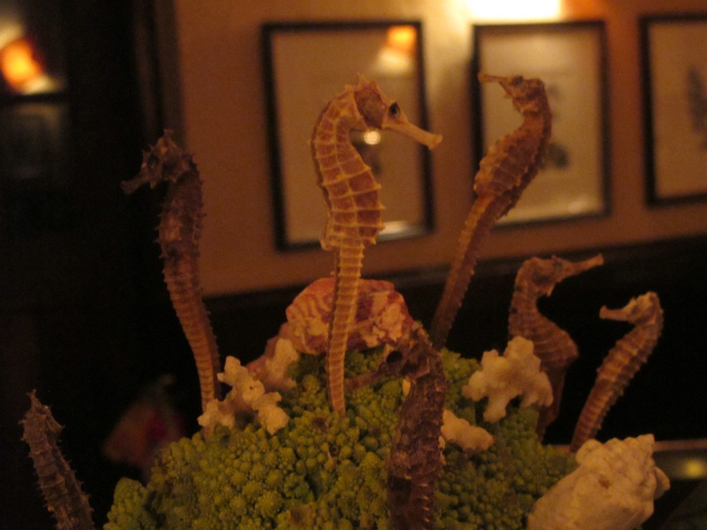 It was there, in Florida, sitting on her balcony that the plans were hatched to celebrate her upcoming birthday of a “certain age.” Other than the guest list, of her closest relatives and friends, my Mother would have no inkling of what was to come. I picked the sea horse theme because of her fascination with these piscatorial equestrian creatures and is a symbol of her favorite vacation, a Crystal Cruise.