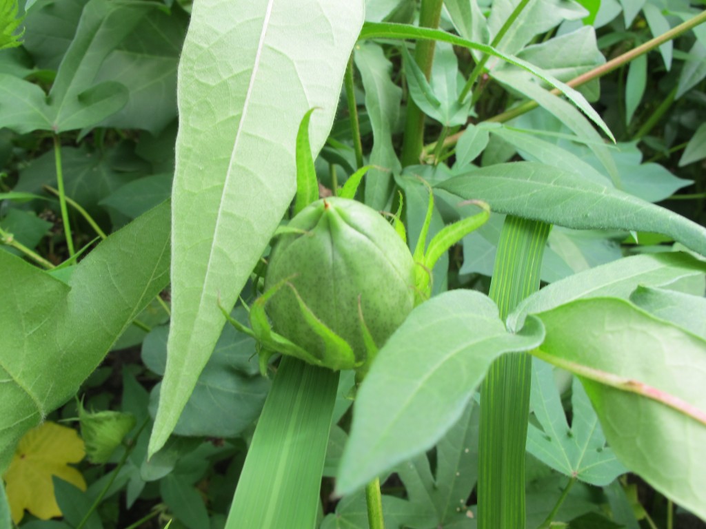 ByVivianGrowing impatient to see the bolls in my garden burst and ripen with cotton , I picked one today and opened it up to reveal it’s inner beauty. Here the developing cotton is placed on a late blooming dahlia. Breath taking!